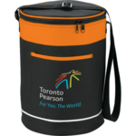 The Spectator Barrel 18-Can Event Cooler features PEVA insulation and a zippered main compartment. Additional features include an open front pocket and an adjustable shoulder strap.