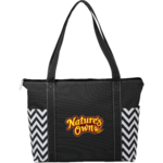 Part of our Bold Geometry trend collection, this business tote features a graphic chevron design. Zippered main compartment. Two side pockets. Reinforced handles. 11" handle drop height.