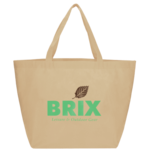 The YaYa Budget Non-Woven Shopper Tote has a large open main compartment with double 20 inch reinforced handles. It's completely reusable and a great alternative to plastic bags. Gusset & Handle Decorating does not qualify for one day turn. Bag is flared at the top and 19.5" wide when laid flat or when not fully stuffed. Bottom is 12" in width or when bag is fully stuffed. Polypropylene is recyclable with #5 plastics please check with your local municipalities for specific rules and regulations.