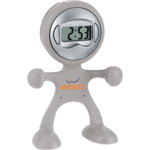 The Flex Man Digital Clock features a digital alarm and displays the time, date and seconds. It also includes a pen and message holder.
