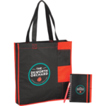 Optimize your message with this Convention Gift Set. Set includes (2150-21) Non-Woven Pocket Tote, (2800-14) Color Pop Spiral JournalBook, (6620-31) Ambassador Square Pen. Pricing includes a one color/ one location imprint on each item. Available on Sureship!