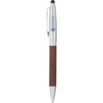 Exclusive Leed's design. Vinyl wrapped bottom barrel with shiny chrome upper barrel. Soft rubber stylus tip is integrated into the end cap of pen and eliminates fingerprints and smudges on your device. Compatible with any capacitive touchscreen device including iPhone, iPad, Blackberry, and Android OS Tablets or Smartphones. Also ideal for any public touchscreen uses such as ATM or retail payment pads. Complement to Abruzzo stationery.