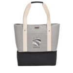 The Cutter & Buck® Boat Tote Cooler is your new go-to event tote. The 16oz. cotton tote features a zippered main compartment with striped cotton interior lining. The bottom features a zippered drop-bottom cooler that’s perfect for keeping your drinks and snacks cold. Featuring Cutter & Buck® branded zippers, tarpaulin grab handles and a durable tarpaulin bottom, this tote combines luxury and convenience.