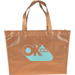 Large open main compartment. Unique embossed "x" pattern with a trendy metallic laminated finish. Reusable and a great alternative to plastic bags.