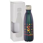 With the psychedelic and iridescent finish, your next promotion will be sure to stand out. Bottle is double wall 18/8 grade stainless steel with vacuum insulation. Inner wall is plated with copper for ultimate conductivity to keep drinks hot for 12 hours and cold for 48 hours. 17oz. Drinkware is 1625-26. “For additional protection, all Drinkware pieces will be individually polybagged and inserted in the gift box.”