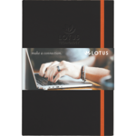 Elevate your brand with this full color, custom bound journal. Features a built in elastic closure, ribbon page marker and 96 sheets of cream lined paper. Customizable full color graphic wrap and blind deboss decoration included in pricing.