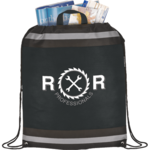 The Eagle Non-Woven Drawstring Bag features an open main compartment with a cinching rope closure, stylish reflective stripes and a convenient carry handle.