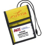 The Deluxe I.D. Badge Holder features a hook and loop closure, an inside zippered pocket and one open pocket. Great for tradeshows and employee badges, it also includes pen sleeves, an open pocket on the back and an adjustable breakaway lanyard. Window size: 3" H x 4-3/8" W. Pens are not included.