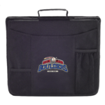 1"-thick foam interior. Light weight with handle to make the seat easily transportable. Flap down organizational panel with compartments for holding a water bottle, program, blanket and all other game day essentials.