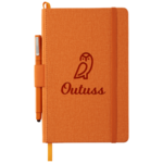 Set includes (2800-43) 5.5" x 8.5" Heathered Hard Bound JournalBook and (6620-33) Ambassador Ballpoint Stylus. Heathered PU hard cover bound journal. Color matching elastic pen loop on spine, color matching elastic closure and ribbon page marker. 80 sheets of cream lined paper with color matching painted edges.
