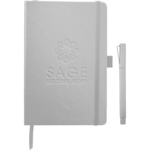 Set includes (2800-11) Nova Bound JournalBook™ and (6620-31) Ambassador Square Ballpoint. Faux, leather like hard cover journal with built-in elastic closure. Ribbon page marker. Expandable accordion pocket. Includes 96 sheets of lined white paper.