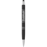 Anodized powder finish barrel with subtle ring etched grip for writing comfort. Soft, rubber touch stylus. Click action mechanism. Pen includes premium blue ballpoint ink.