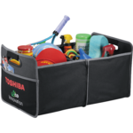 The neet Trunk Organizer keeps your car neat and organized and folds neatly to store when not in use. 600 D material with two outer pockets for extra storage and two inner compartments. Padded handles for easy carrying.
