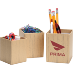 The 3-piece smart box is crafted with cardboard and covered with colored paper. Three sizes offer simple organization for pens and other small desk accessories.
