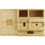 The Bamboo Fast Wireless Charging Dock Station features a fast wireless charging surface (5W/7.5W/10W), smart watch charger stand, true wireless earbuds charging slot, phone/tablet stand, and two organizational compartments all in one piece. Three outputs: 5V/2.4A max. If you want to charge an iPhone series before iPhone 8 with wireless technology, an external wireless charging receiver or receiver case is required. It works with most plastic phone cases on. Includes a UL listed AC adapter (59" long). Packaged in a FSC certified premium gift box. Due to the nature of the bamboo material, variations in laser imprinting quality may occur.